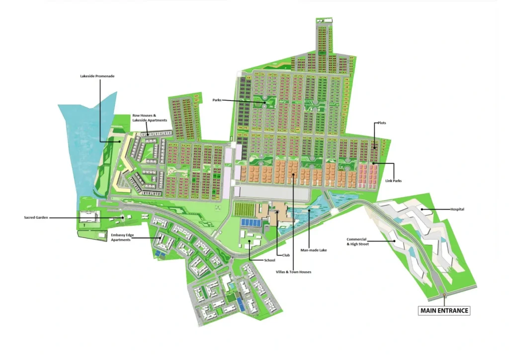 The project offers a variety of residential options, including residential plots, luxury villas, and apartments. Buyers can choose the type of property that suits their preferences and requirements.